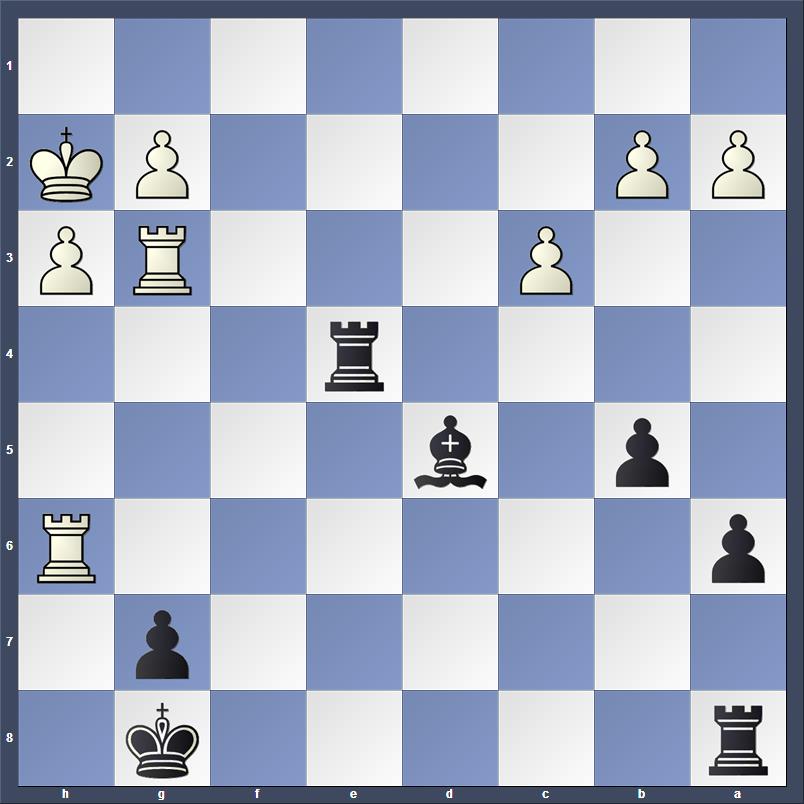 An dieser Stelle hat mein Gegner in wohl hoffnungsloser Situation dann aufgegeben, was mich aber auch immerhin 64 Züge gekostet hat. Beide Seiten hatten zwar bereits viel Bedenkzeit verbraucht, mein Gegner mehr als ich (zusätzlich trat er leicht verspätet an), aber keine Seite hatte die für die ersten 40 Züge zur Verfügung stehenden zwei Stunden voll ausgenutzt.