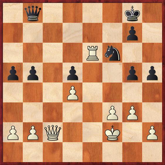 27.Sg6+! schön gesehen und Chance genutzt. 27…fxg6 28.Txf8+ Txf8 29.Dxf8+ Kh7 30.Db4 h5 31.f3 a5 32.De1 Sf6 33.Dxe6 b5 34.De2 Dc6 35.Dd2 Db6 36.Tc1