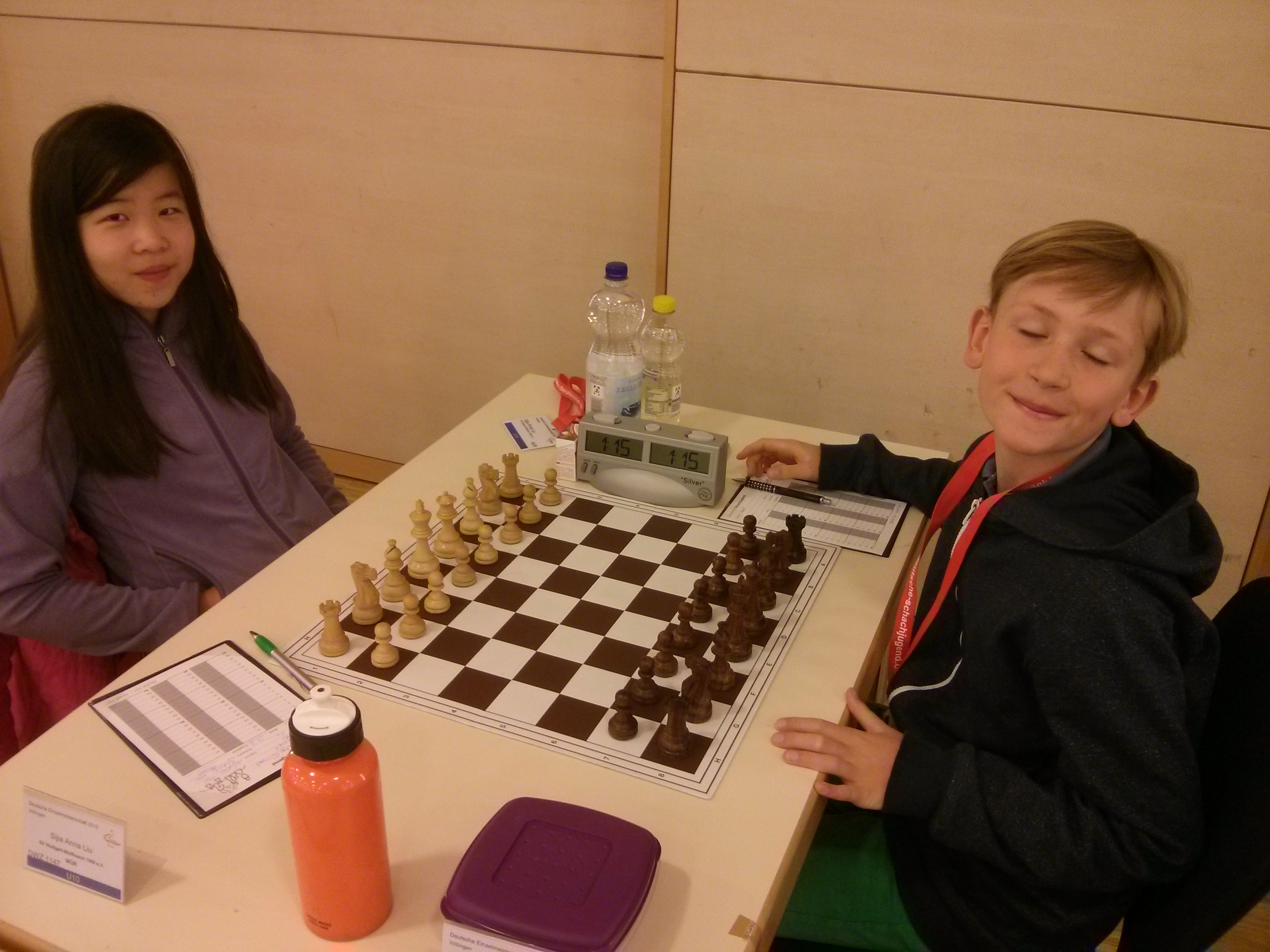 Siijia Anna Liu kam in der dritten Runde exzellent vorbereitet und spielte einen gut vorgetragenen Löwenfisch-Angriff gegen Jakobs Drachen. Jakob stellte prompt eine Figur ein. Mit dieser Belastung und dem Remisverbot im Rücken Mmusste Jakob dann dynamisch spielen und tat dies auch. Seine beiden Türme feuerten in die gegnerische Stellung und Jakob eroberte erst einen und dann einen zweiten Bauern. Mit einer feinen Umwandlung – Jakob wählte korrekt den Springer statt der Dame, obwohl auch die Dame nicht Patt gesetzt hätte – erzwang Jakob schließlich seinen ersten Sieg und erhielt viel Lob für diese tolle Kampfleistung.