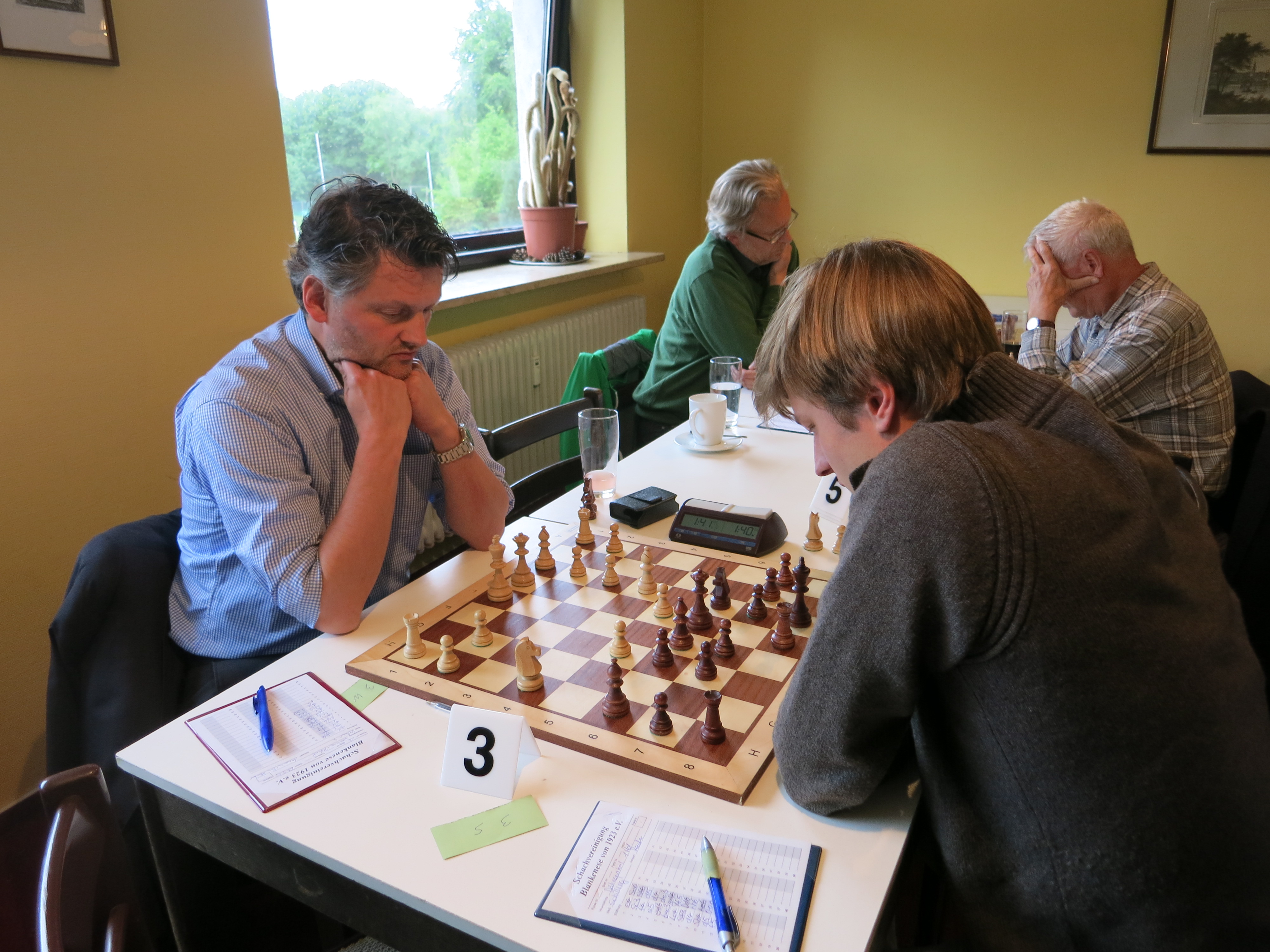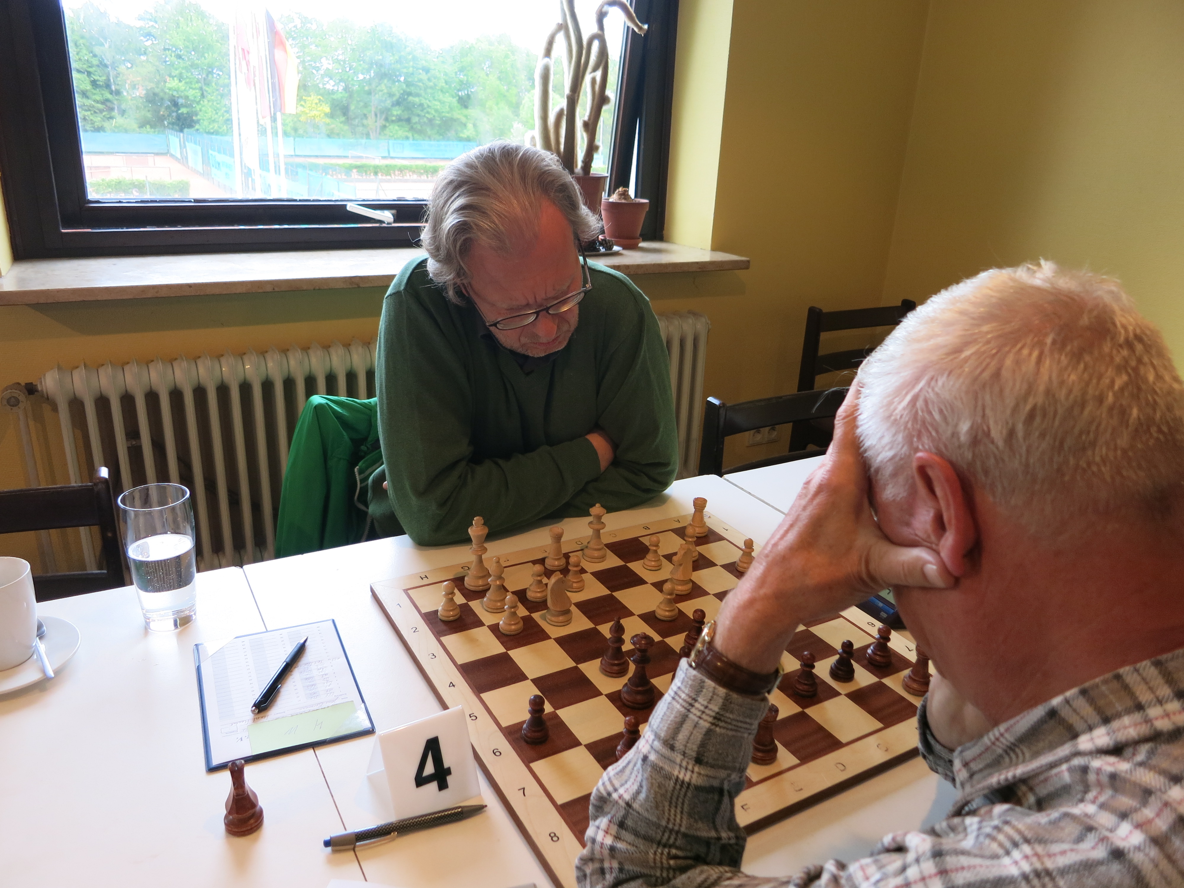 Michael und Alfred spielten beide vorsichtig und es blieb ein Endspiel mit gleicher Bauernstruktur übrig, das Remis gegeben wurde.
