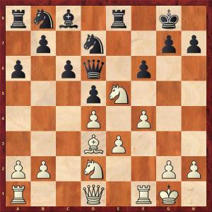 Nach diesem Fehler gab Eero den Sieg nicht mehr aus der Hand: 13.Lxh7+! Kf8 [13…Kxh7 14.Dh5+ Kg8 15.Dxe8++–] 14.Sg6+ Kf7 15.Sf3! De6 16.Sg5+! fxg5 17.fxg5+ Sf6 18.gxf6 [Es geht auch 18.Dh5] 18…gxf6 19.Tf3 Sd7 20.Sf4 [Damit gewinnt Weiß auf einfache Weise die Qualität.] 20…Dd6 21.Lg6+ Ke7 22.Lxe8 Kxe8 23.Tg3 Kd8 24.h4 Sf8 25.h5 Lf5 26.Tg7 Kc8 27.Sg6 Sxg6 28.hxg6 De6 29.Dh5 Kb8 30.Dh7 Dxe3+ 31.Kh1 Lc8 32.Te7 Dd3 33.Df7 Dxd4 34.Tae1 Dh4+ 35.Kg1 Dd4+ 36.T7e3 Ka7 37.g7 Lg4 38.g8D Txg8 39.Dxg8 f5 40.Kh1 Ld1 41.Dh7 Lc2 42.Te7 Dxb2 43.Txb7+ Dxb7 44.Te7 aufgegeben. 1–0