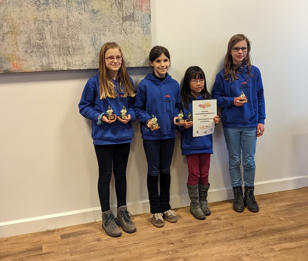 Im Ersatzspielerturnier sind wir sogar Dritter geworden und haben einen Pokal gewonnen. Maike, Anqi und Elena holten dort die entscheidenen Punkte.