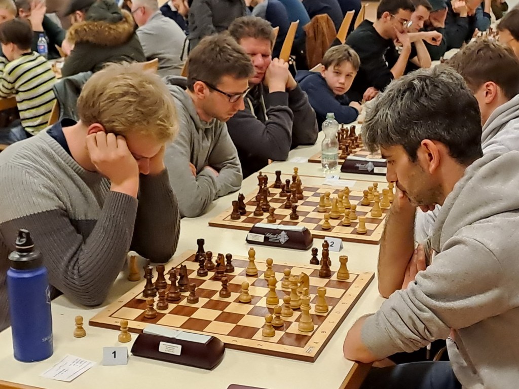 Das Turnier verlief somit bis zur Schlussrunde spannend. Dort kam es dann zu den entscheidenden Partien zwischen IM Ilja Schneider und FM Tom Woelk, an Brett 2 IM Malte Colpe gegen IM Aljoscha Feuerstack, und an Brett 3 IM Markus Lammers gegen IM Michael Kopylov. An Brett 4 traf FM Markus Hochgräfe auf Artem Dyachuk und an Brett 5 FM Martin Voigt auf CM Michael Kotyk.