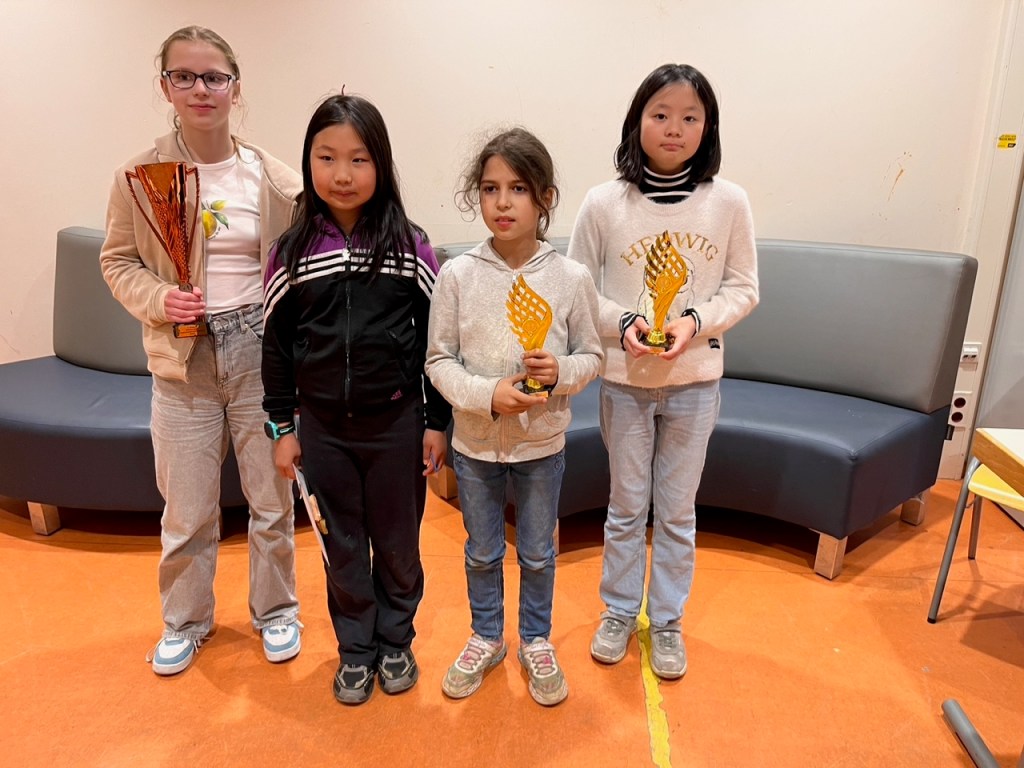 Den Pokal für das beste Mädchen U zwölf gewann Elena. Sie hätte in der dritten Runde gegen Antonia,, immerhin die Vierte des Gesamtklassments, sogar gewinnen können. Leider wählte sie mit Figur mehr nicht die sichere Abwicklung.