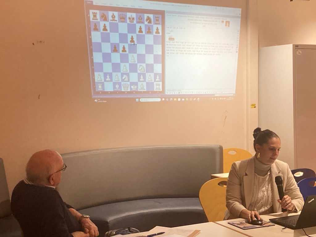 22 Mitspieler waren am Start, darunter auch externe Gäste vom u.a. HSK, SV Bad Bevensen, Bayern München und Weiße Dame. Nach einem kurzen Interview zeigte uns die Meisterin eine interessante positionelle Gewinnpartie aus jungen Erwachsenenjahren gegen GM Elisabeth Pähtz.