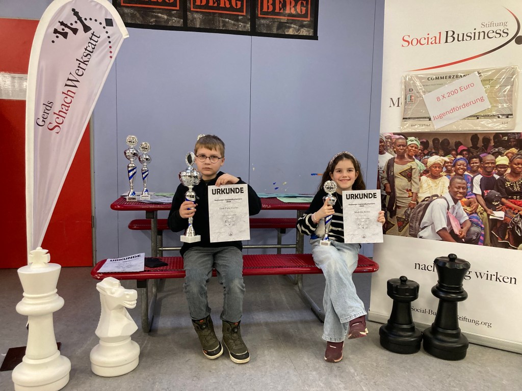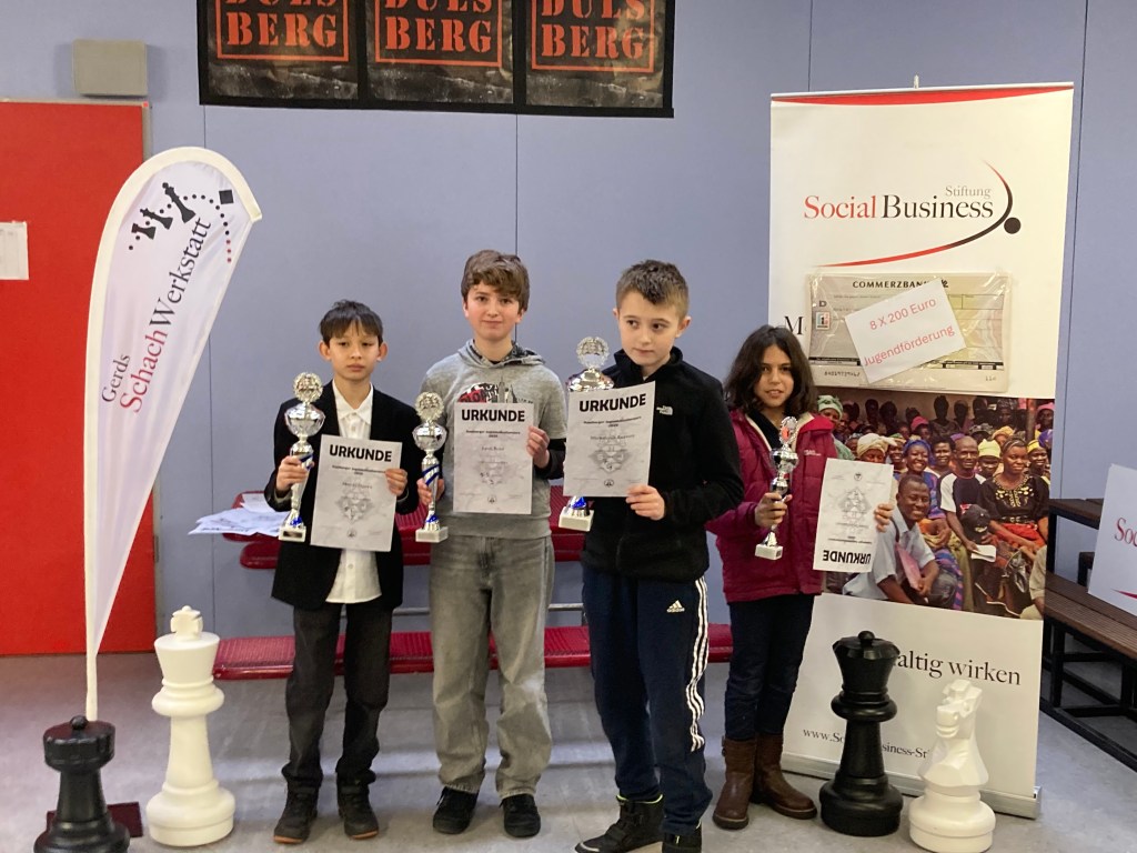 Und, last but not least, gab es ein weiteres sehr erfreuliches Resultat aus Blankeneser Sicht. Die U8-1 gewann mit großartigen 8/9 Mia Meißner. Sie ließ das gesamte Teilnehmerfeld der U8 mit einem ganzen Punkt Vorsprung hinter sich. Auf Platz 3 landete mit sehr guten 7/9 Moritz Thaler. Einen Top Ten Platz erspielte sich Oscar Lindlar (6/9), gute 5/9 erzielte Pinak Medam und Thea Jöhnke kam auf 4/9. In der schwächeren AK U8-2 erspielte Mia’s jüngere Schwester Millie Meißner 6/9 und wurde Dritter. Ein schöner Erfolg für das noch junge Mädchen (Jahrgang 2019).