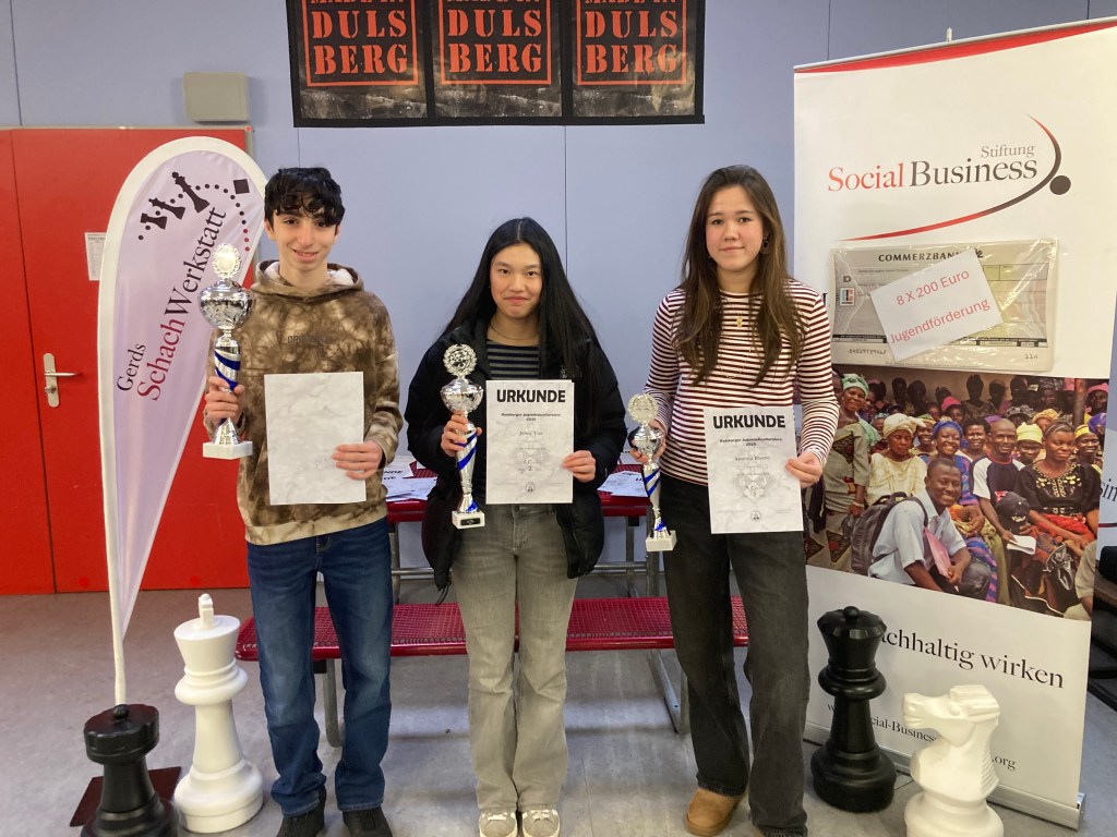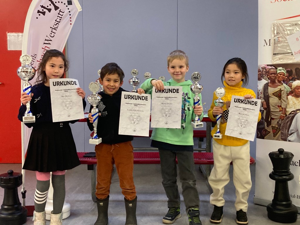 Sie war nicht nur bestes Hamburger Mädchen in der U8 und in der U10, dieses Jahr hat Elena Seyedfakhari auch diesen Titel und Pokal in der U12 gewonnen! Ebenfalls fünf Punkte aus sieben möglichen Partien erkämpften in der U12 neben Elena noch Xaver-Louis Menke, Arjun Sengupta und Elli Emeric. Siqi He und Francesca Alessandrini kamen auf jeweils 4 Zähler, Thore Jöhnke erzielte 3,5 Punkte.