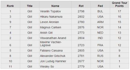 Who will be the winner of the Grand Chess Tour? Grand Chess Tour Standings (post 2015 Sinquefield Cup)